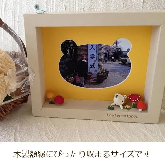 マット部分の幅が広いので作ったお花や動物など貼る時に、はみ出しにくいのもクイリングにピッタリなフォトフレームです。