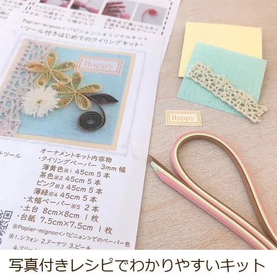 ペーパークイリング専用ツール、作り方レシピ、練習用のペーパーもたくさんついている『これからペーパークイリングを始めたい』という方もすぐにはじめてもらえるキット
