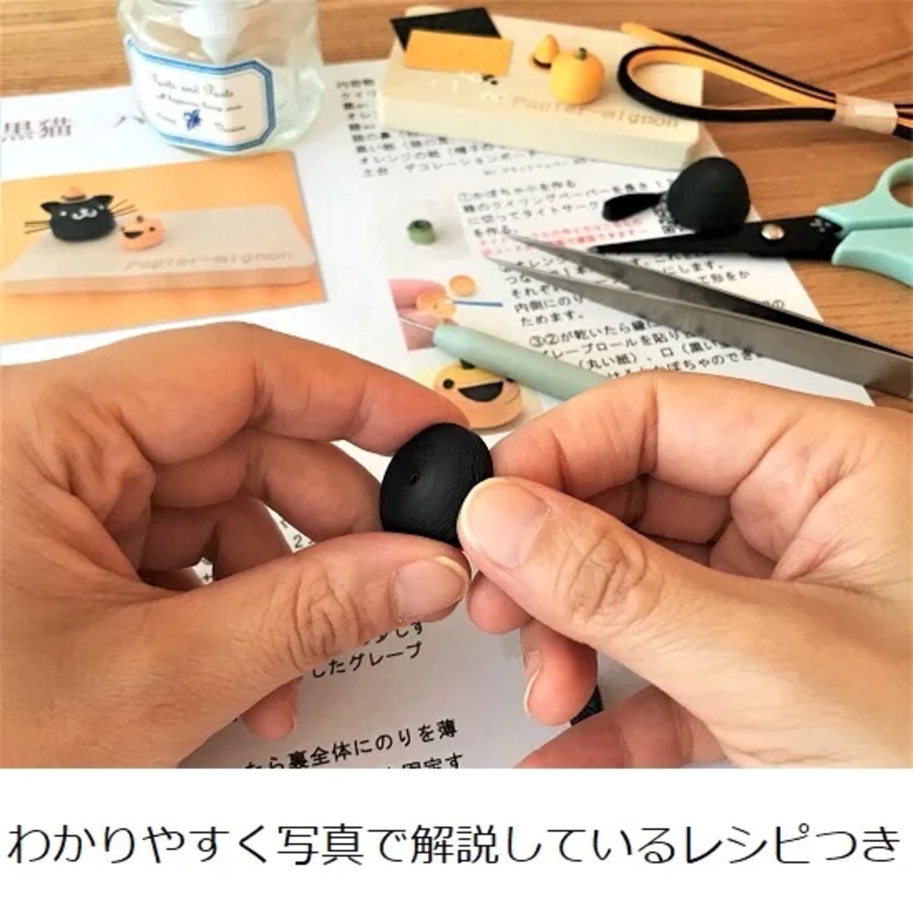 魔女の帽子を被った黒猫ちゃんと小さなかぼちゃが作れるキット