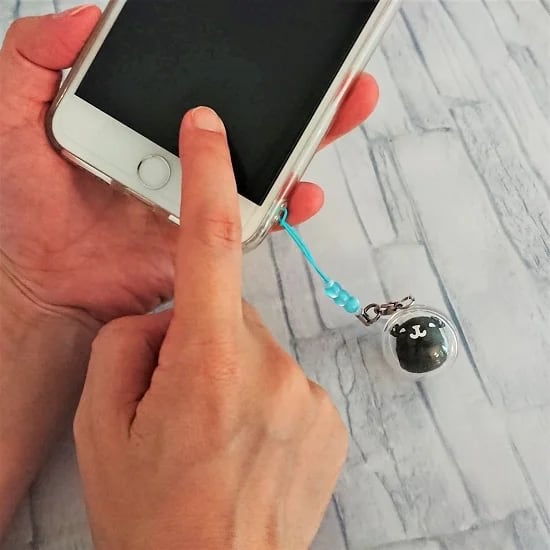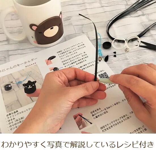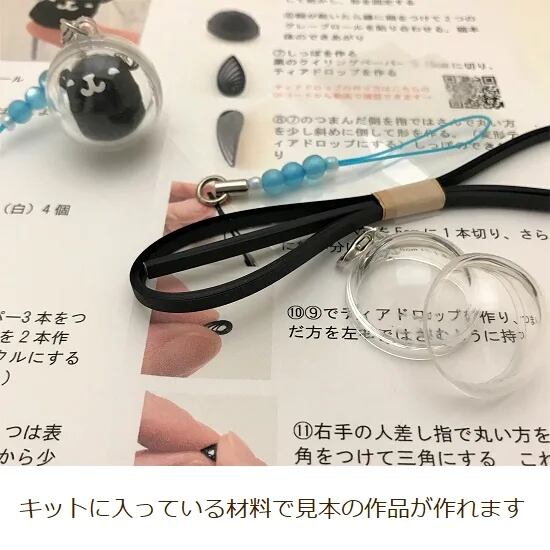 できあがった黒にゃんこをキーホルダーにとじこめて、持ち歩けるキット。