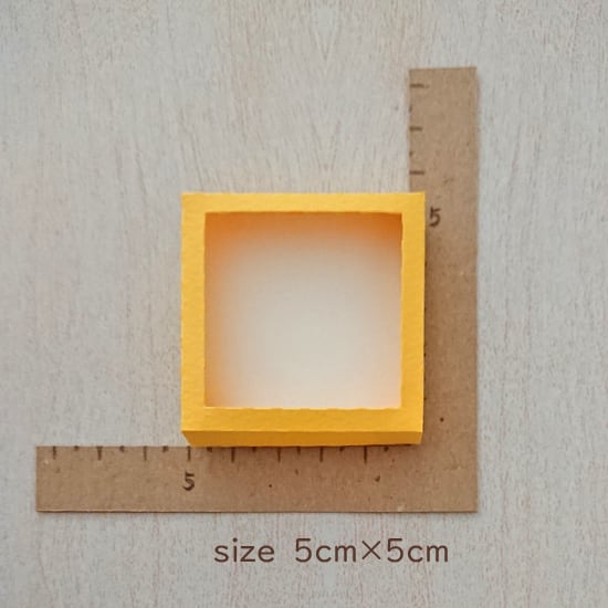 手のひらにスッポリ隠れる極小な大きさで3mm以上の深さにしているのでペーパークイリングで作った作品を貼ってもはみ出ません。