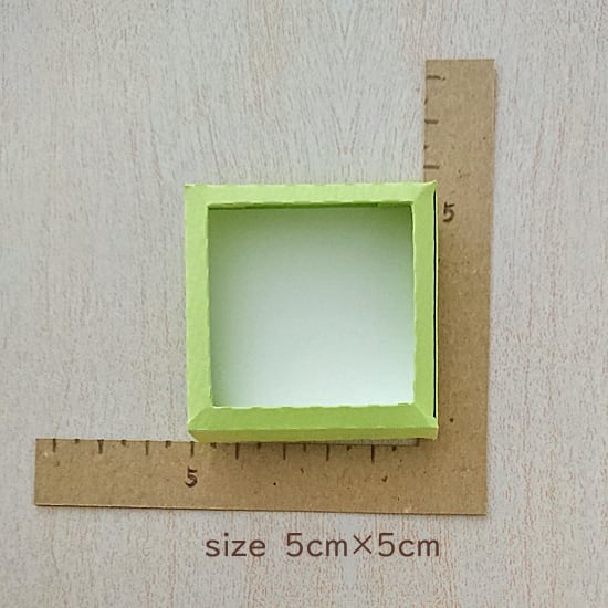 手のひらにスッポリ隠れる極小な大きさで3mm以上の深さにしているのでペーパークイリングで作った作品を貼ってもはみ出ません。