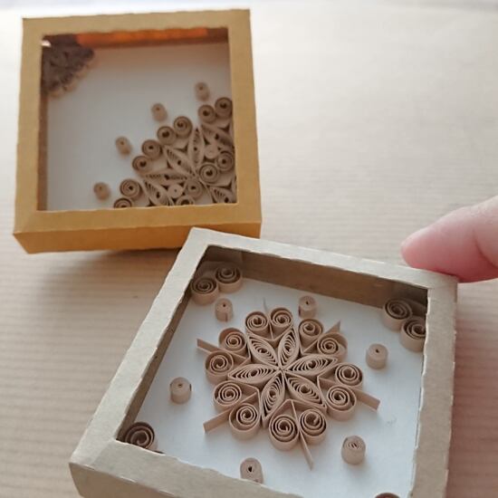 手のひらにスッポリ隠れる極小な大きさで3mm以上の深さにしているのでペーパークイリングで作った作品を貼ってもはみ出ません。