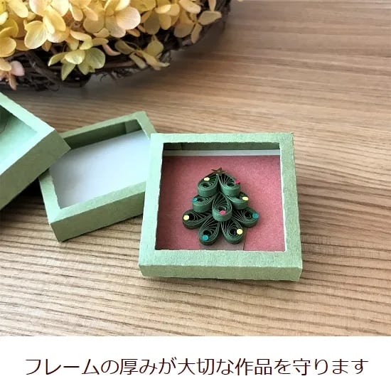 手のひらにスッポリ隠れる極小な大きさで3mm以上の深さにしているのでペーパークイリングで作った作品を貼ってもはみ出ません。