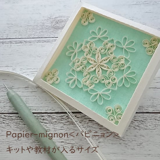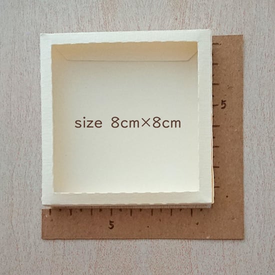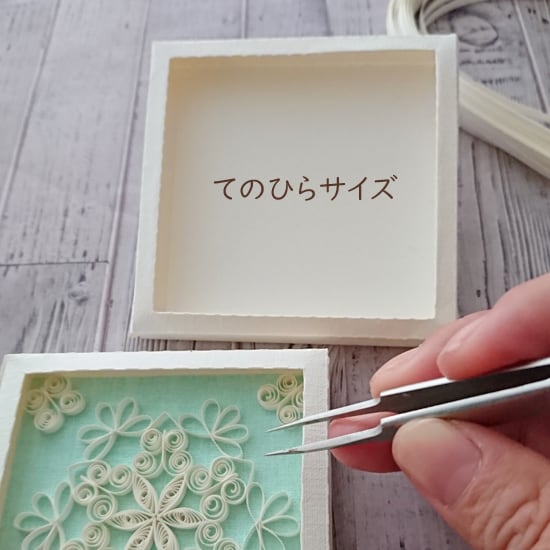 手のひらに乗る大きさで3mm以上の深さにしているのでペーパークイリングで作った作品を貼ってもはみ出ません。
