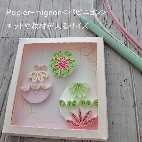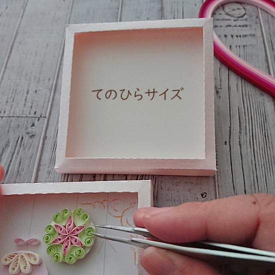 手のひらに乗る大きさで3mm以上の深さにしているのでペーパークイリングで作った作品を貼ってもはみ出ません。