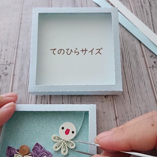 手のひらに乗る大きさで3mm以上の深さにしているのでペーパークイリングで作った作品を貼ってもはみ出ません。