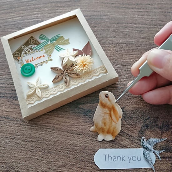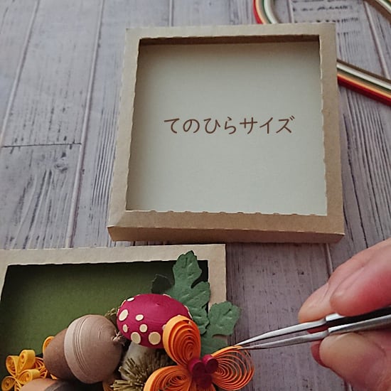 手のひらに乗る大きさで3mm以上の深さにしているのでペーパークイリングで作った作品を貼ってもはみ出ません。
