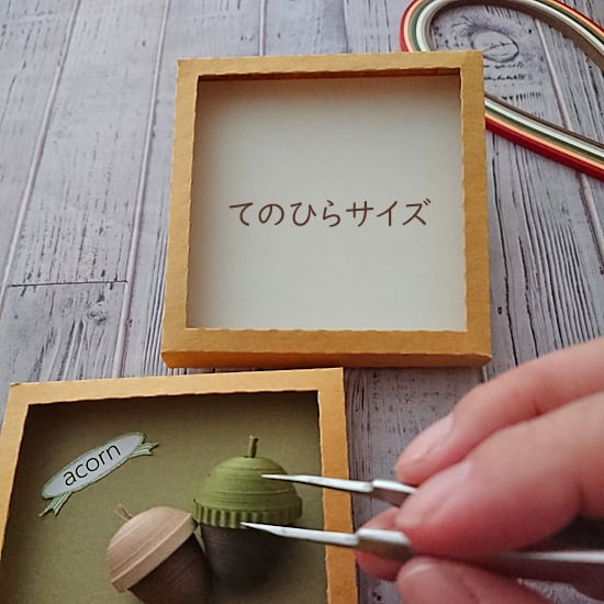 手のひらに乗る大きさで3mm以上の深さにしているのでペーパークイリングで作った作品を貼ってもはみ出ません。